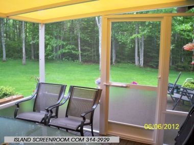 Our removable screenrooms are made in our shop on PEI, these custom fabricated screen panels can be built to size for enclosing outdoor living space, existing overhangs, decks, gazebos and more.